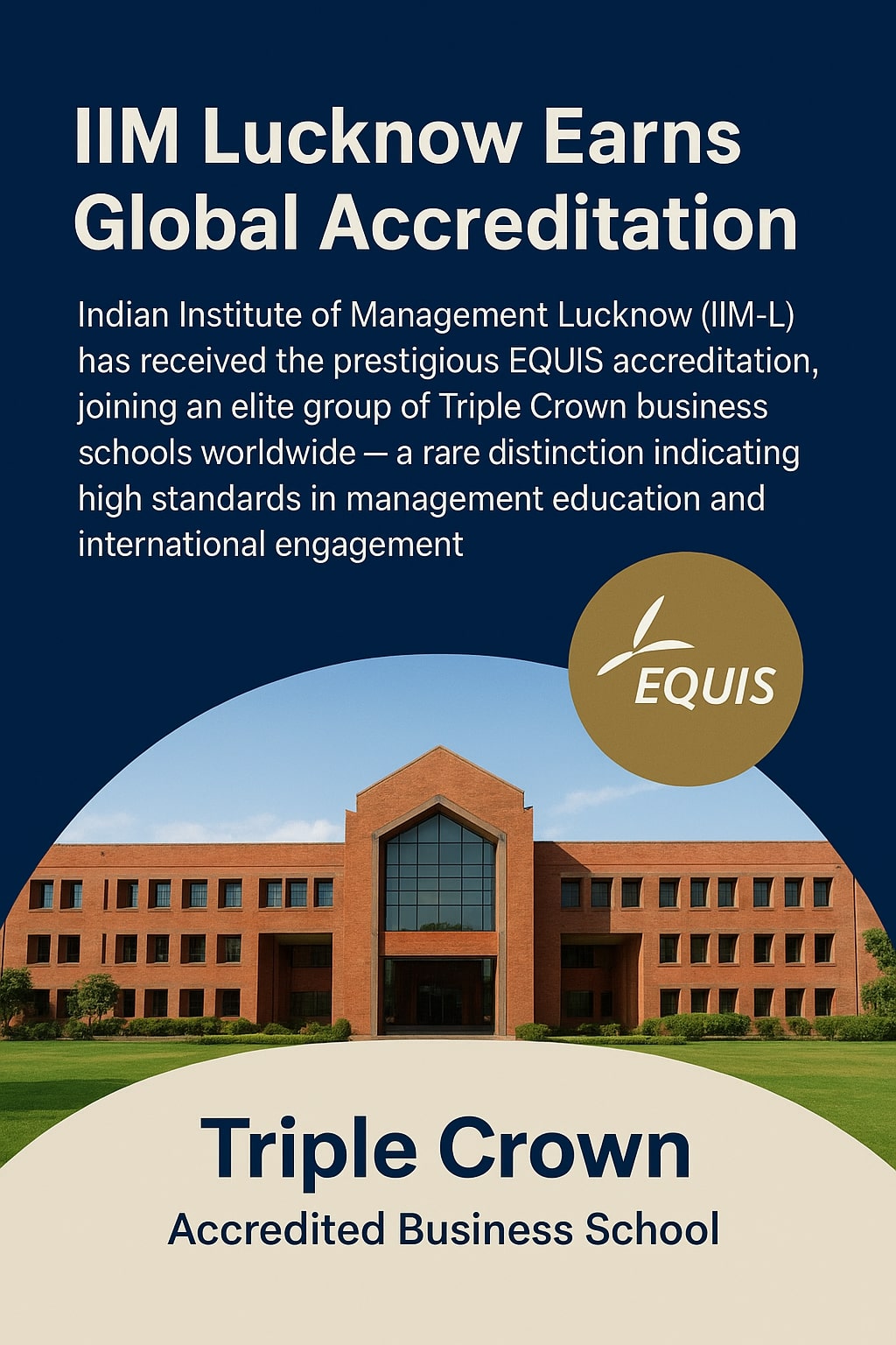 The Indian Institute of Management Lucknow (IIM-L) has achieved a significant global milestone by earning the prestigious EQUIS (EFMD Quality Improvement System) accreditation, placing it among an elite group of business schools worldwide. With this recognition, IIM Lucknow joins the exclusive league of Triple Crown–accredited institutions, a rare distinction that reflects the highest international standards in management education.