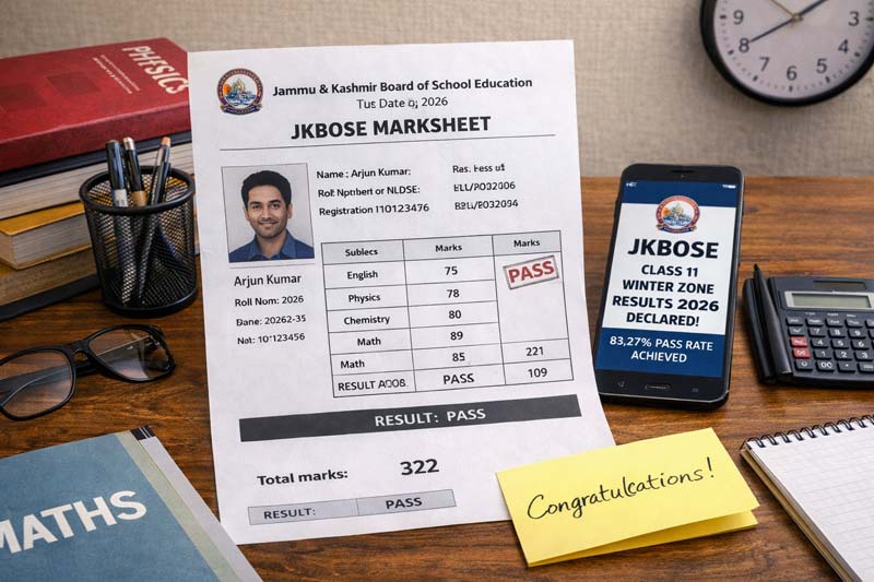 The Jammu and Kashmir Board of School Education (JKBOSE) declared Class 11 Winter Zone results on February 2, 2026, for exams held in October-November 2025. Out of 81,573 students from Kashmir and Jammu winter zones, 67,932 passed, marking an overall pass percentage of 83.27% across 760 centers.