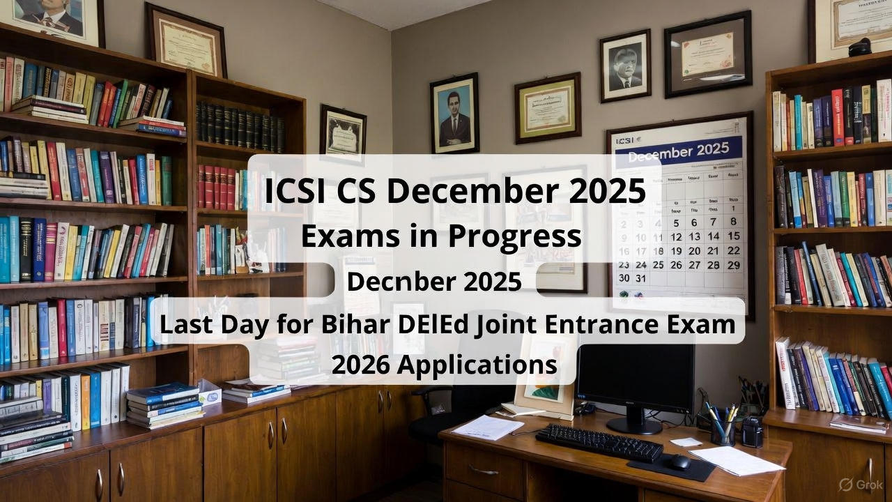 As the year draws to a close, aspiring professionals and future teachers in India are navigating important milestones in their educational journeys. Today marks a significant day for two major examinations: the ongoing ICSI Company Secretary (CS) exams for the December 2025 session and the final deadline for applications to the Bihar DElEd Joint Entrance Examination 2026.